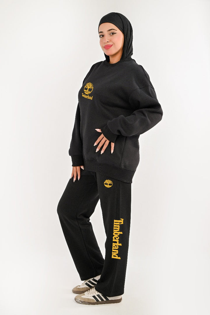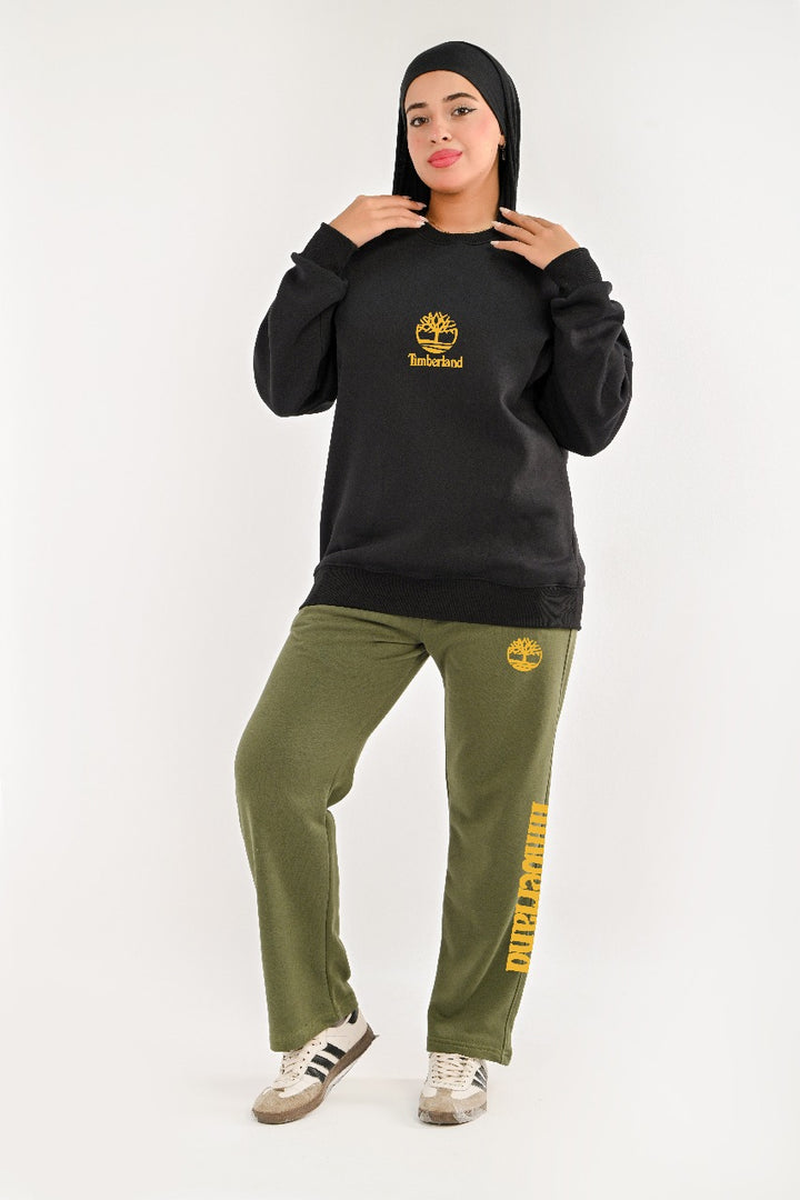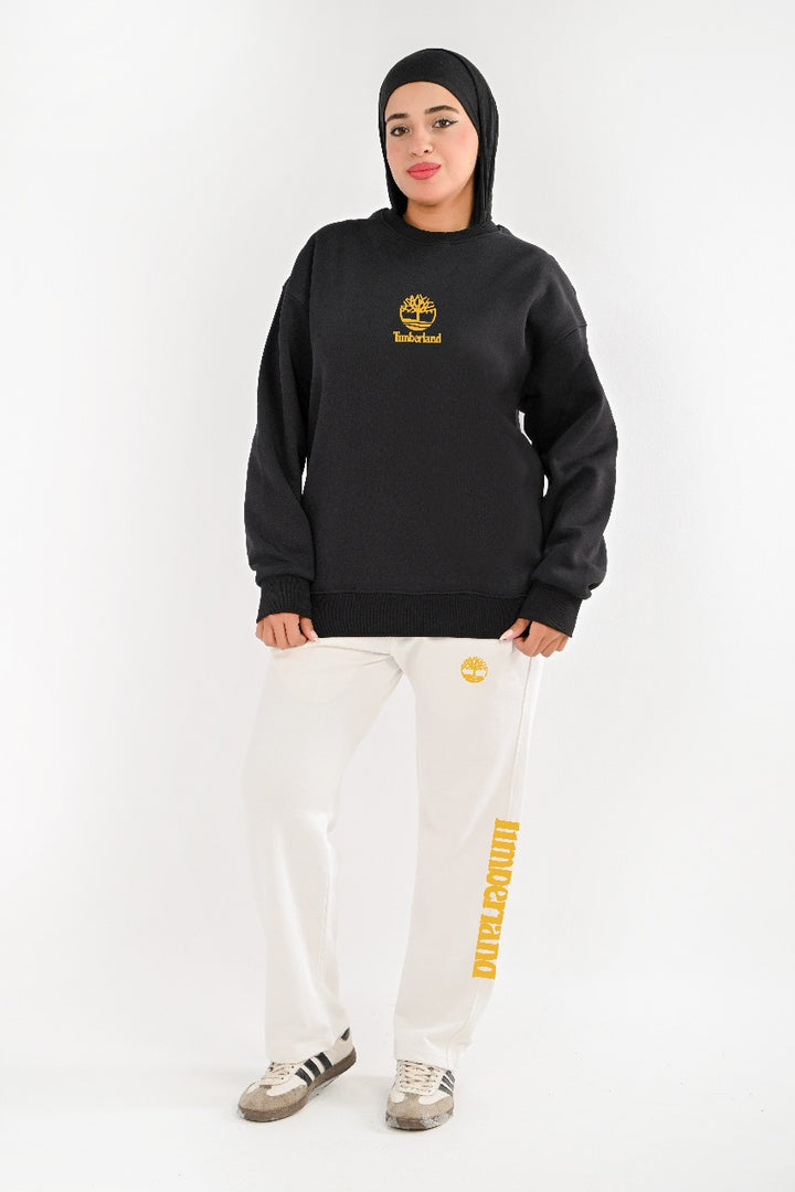 . Two-piece: Fleece-lined sweatshirt and cotton wide leg pants for warmth and comfort.
