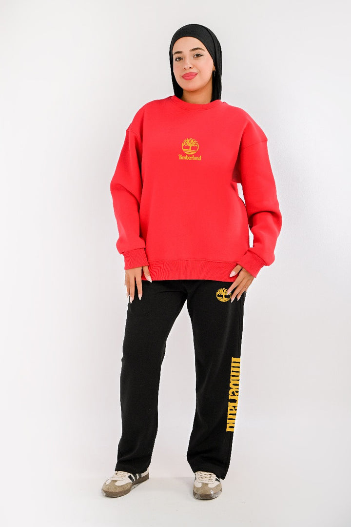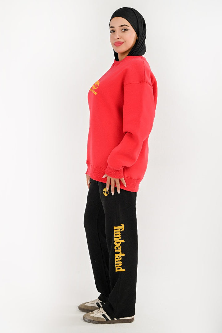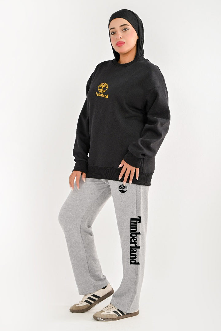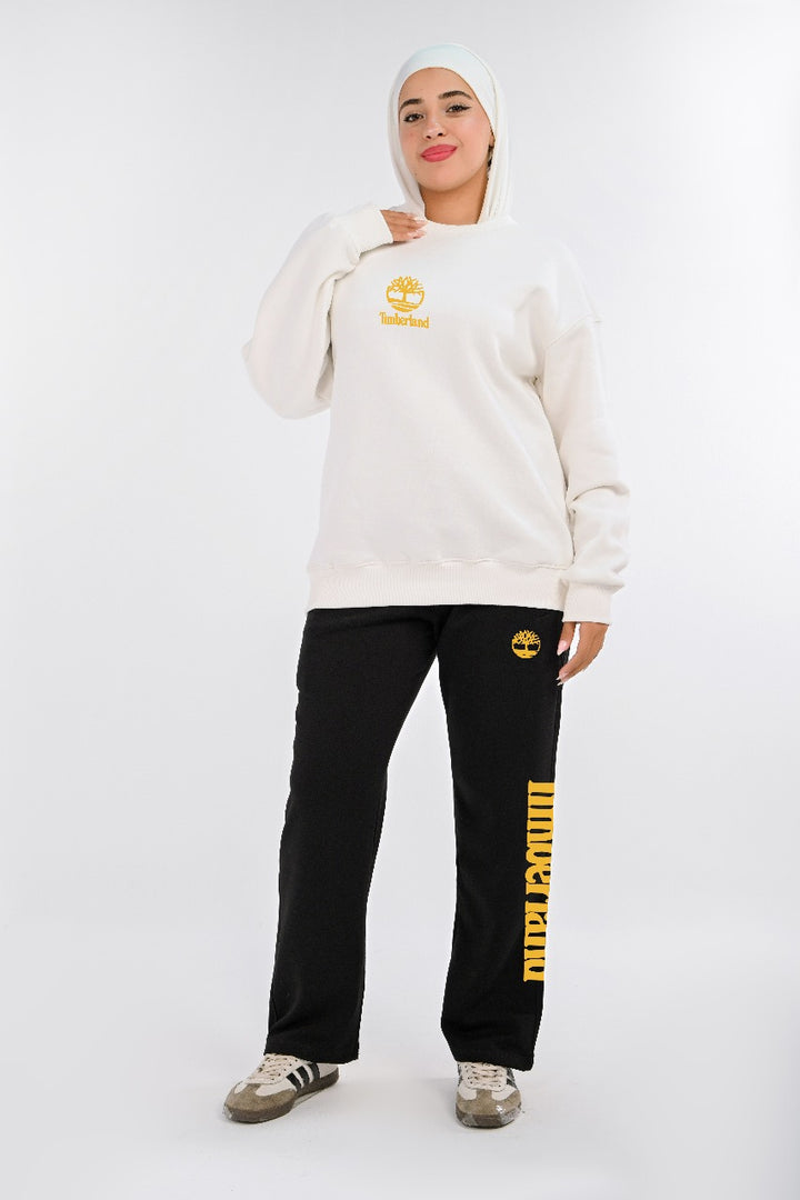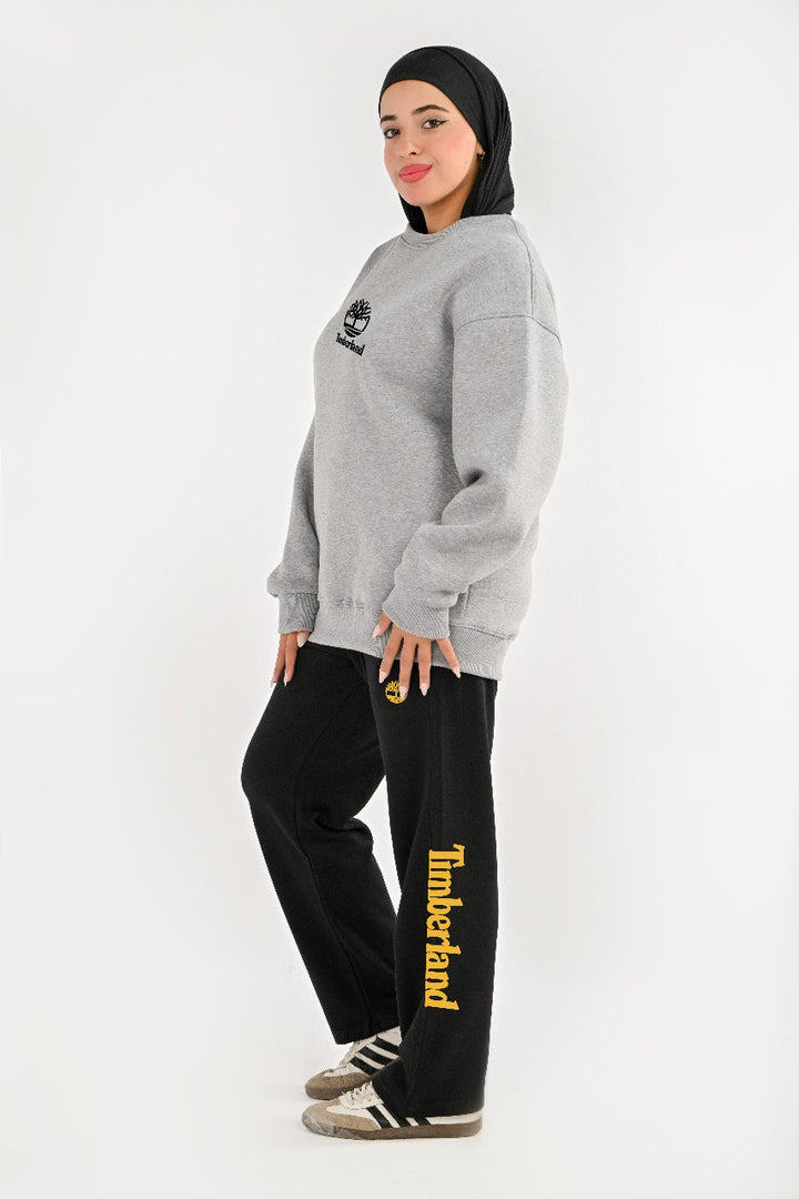 . Two-piece: Fleece-lined sweatshirt and cotton wide leg pants for warmth and comfort.